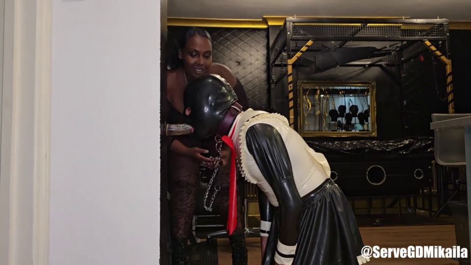 In this intense maid humiliation scene, Mikaila embodies the ultimate Goddess, punishing a negligent sub for his sloppy cleaning. She commands him to the wall-mounted dildo, starting with deepthroating that leaves him gagging and teary-eyed, all while she mocks his inadequacy. The action escalates