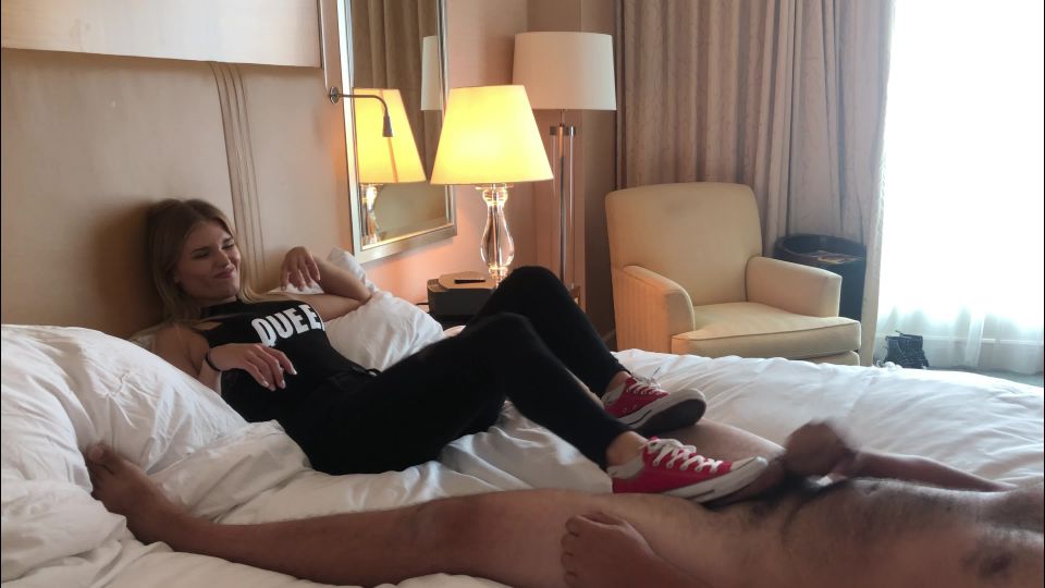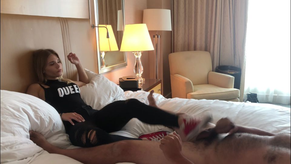 The Beautiful Princess Amber flew into Bust some balls, the Slave quickly realizes that he has made a huge mistake, These Red Converse do some damage