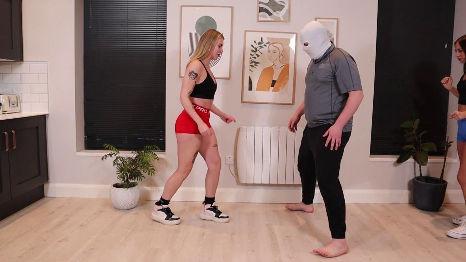 The amazing Tina Snows and I were getting ready for our yoga class when this creepy loser showed up and started staring right at us. No shame at all. He did not even try to look away or pretend he was not fixated. A man with zero honor deserves to learn respect the hard way.We walked over, grabbed